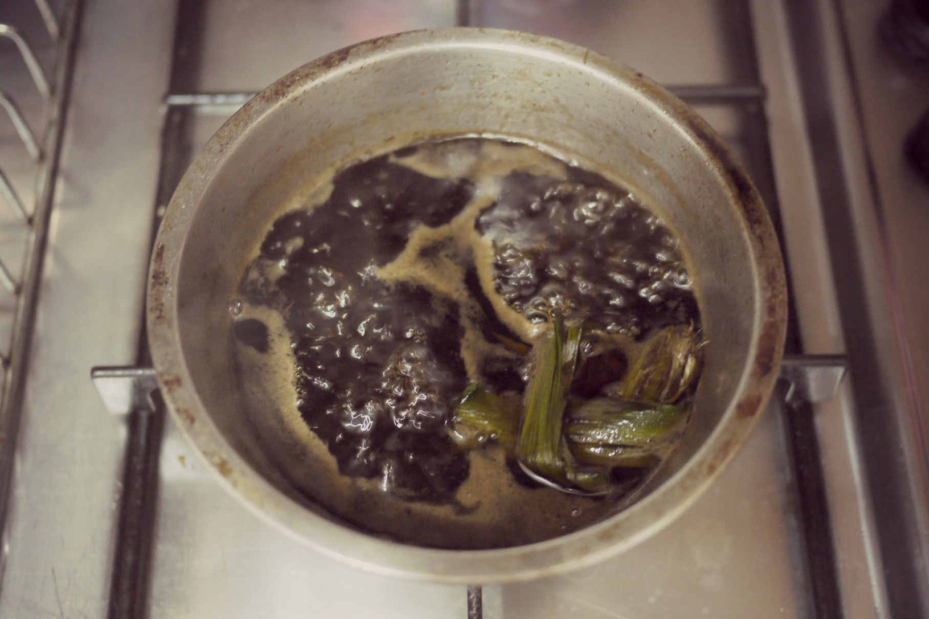 4. Remove pandan leaves and pour syrup into a clean container.  Use immediately, or keep stored in fridge up to 3 months.