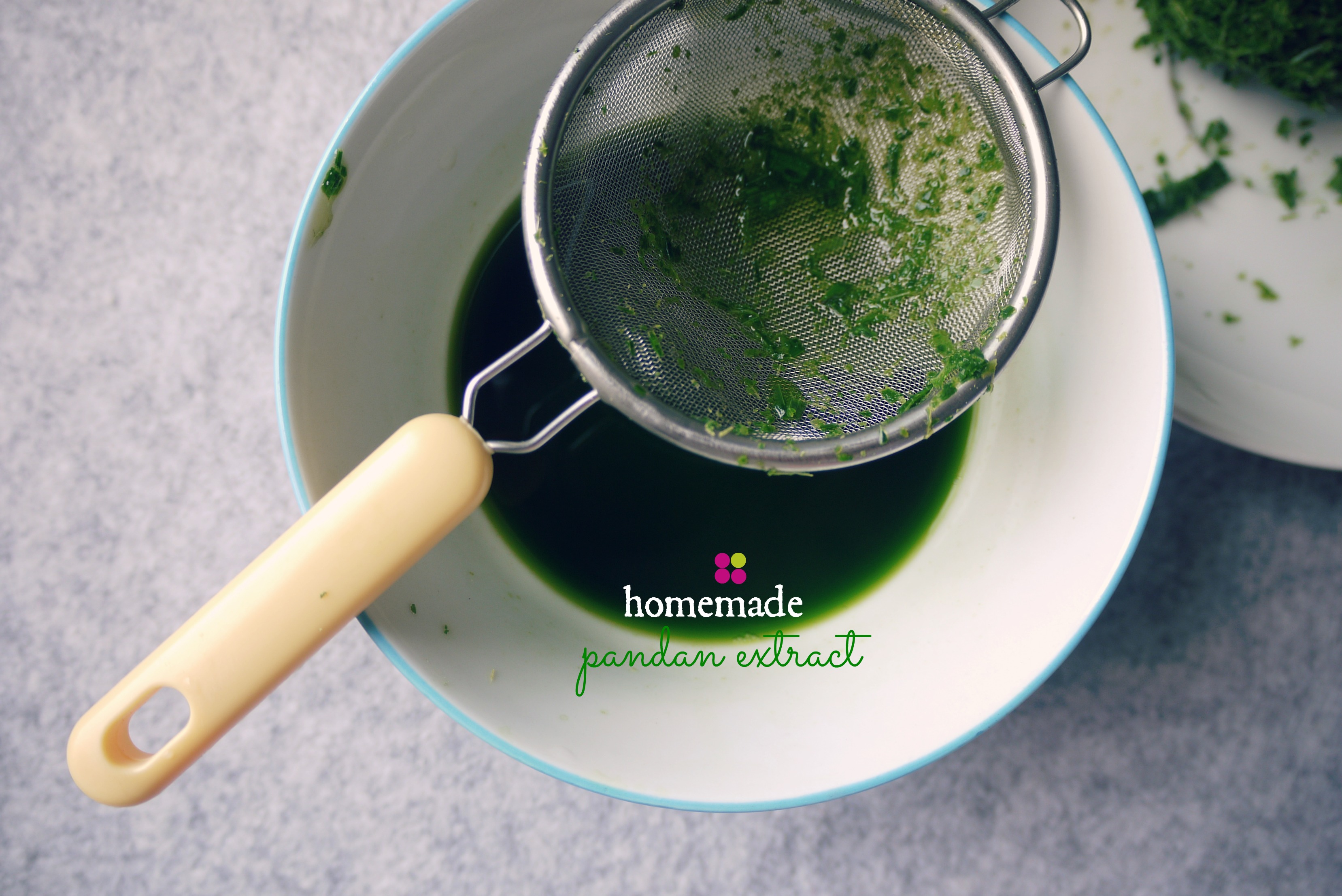 ++ Notes 001 // I am going to try this extraction method using a coffee filter next time round.   Letting the pandan juice sits a few nights in the fridge works very well for the pandan extract to settle at the bottom of the juice.  However, it was difficult to scoop out the clearer liquid on top without mixing it up with the separated dark green pandan extract below.  The extract is so fine and light; any slight movement, such as the lowering down of the spoon, would inevitably mix up the solution again, though the sediments now take a faster time to sink.  I had no choice but to accept that a little of the top liquid (actually pandan flavored water) will be going into my pandan cake.