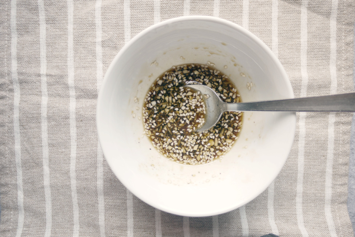 - 1 pound boneless skinless chicken breast/thigh, sliced - 3 tablespoons soy sauce - 1 tablespoon lemon juice - 1 tablespoon brown sugar - 1 tablespoon honey - 1 tablespoon rice wine or mirin - 1 tablespoon minced garlic - 1 teaspoon grated ginger - 1 tablespoon sesame oil - dash of black pepper - 1 teaspoon sesame seeds