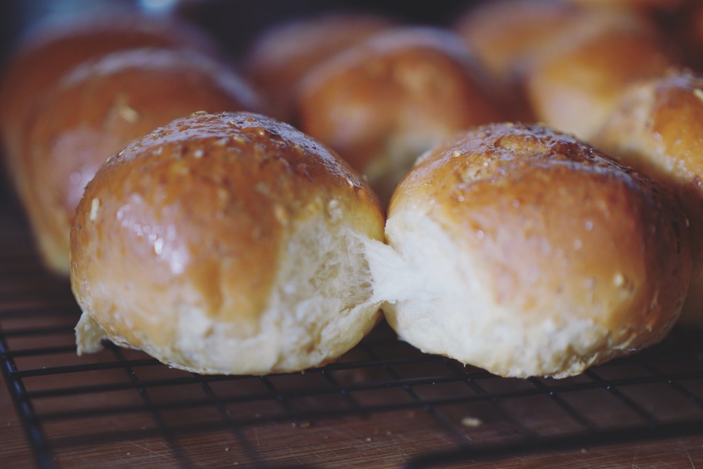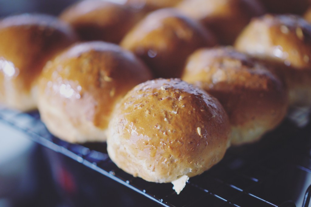 To keep the crust soft, I brush oil on the buns immediately after they are taken out of the oven.