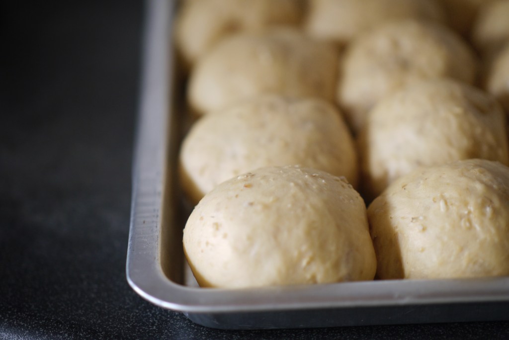 Shape into 12 x 40g buns and arrange them on a greased baking tray, proof for 50-60 minutes.